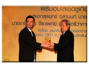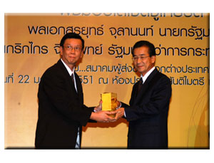 | สมาคมผู้ส่งข้าวออกต่างประเทศ มอบโล่เชิดชูเกียรติแด่่นายกรัฐมนตรี และ รัฐมนตรีว่าการกระทรวงพาณิชย์ (วันที่ 22 ม.ค. 2551) |